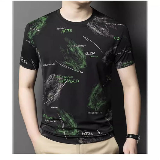 Casual εμπριμέ κοστούμι δύο τεμαχίων με στρογγυλή λαιμόκοψη-GR