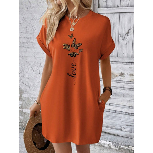 💖Vestido casual con escote redondo y mariposas bordadas-ES