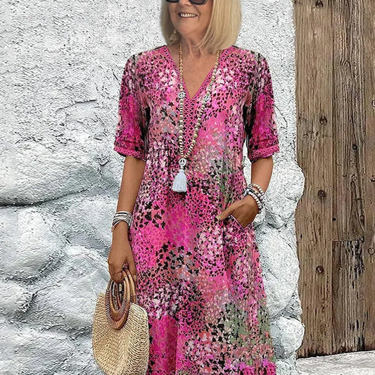 💖Vestido midi holgado de mujer con escote redondo y bolsillos-ES