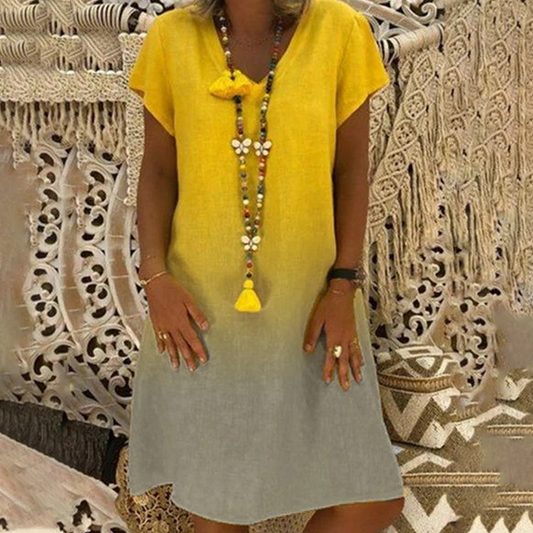 💃Καθημερινό φόρεμα με V ντεγκραντέ και κοντά μανίκια-GR