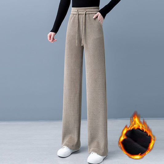🔥✨Christmas special🎅🎁Φόδρα και ενισχυμένο μονόχρωμο παντελόνι με φαρδιά πόδια και κορδόνι περίσφιξης για γυναίκες.-GR