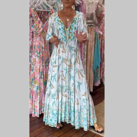 Modna damska sukienka maxi z paskiem i dekoltem w szpic-LT