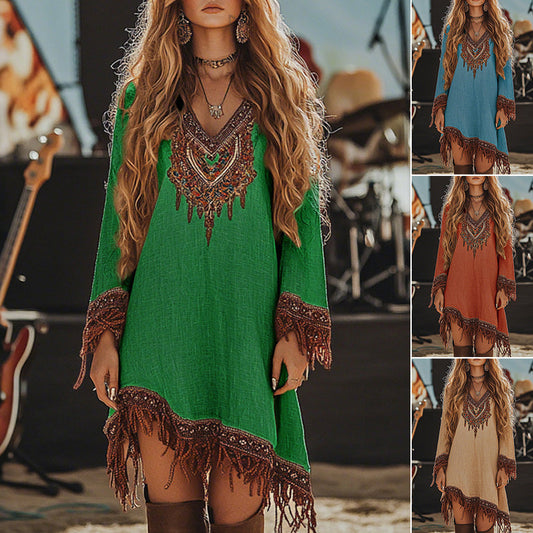 Moteriška suknelė su V formos iškirpte ir raštu-LT