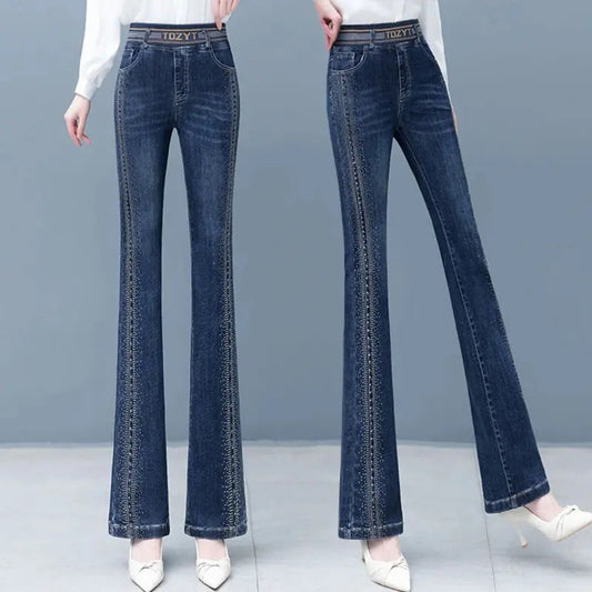 Moteriški džinsai aukštu juosmeniu su elastiniu apvadu-LT