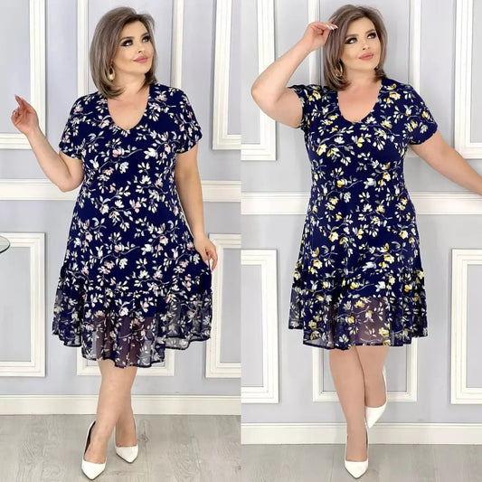 Nauja gėlėta suknelė V formos iškirpte-LT