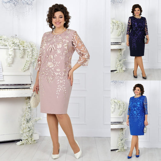 Negabaritinė suknelė su nėriniais ir raštu-LT