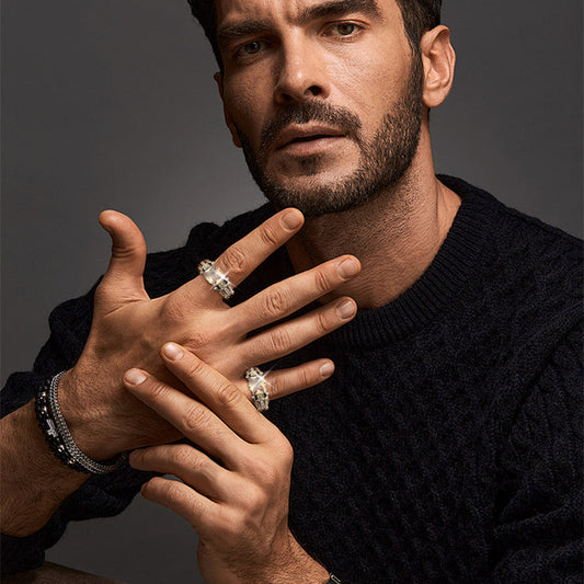 🎁Vroča razprodaja🔥 Vintage prstan s širokim trakom iz kubičnega cirkonija-SI