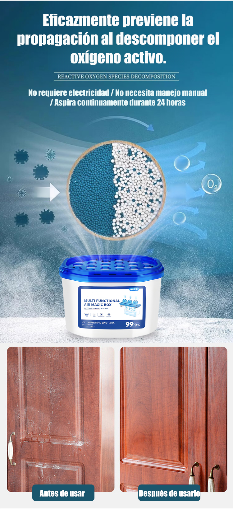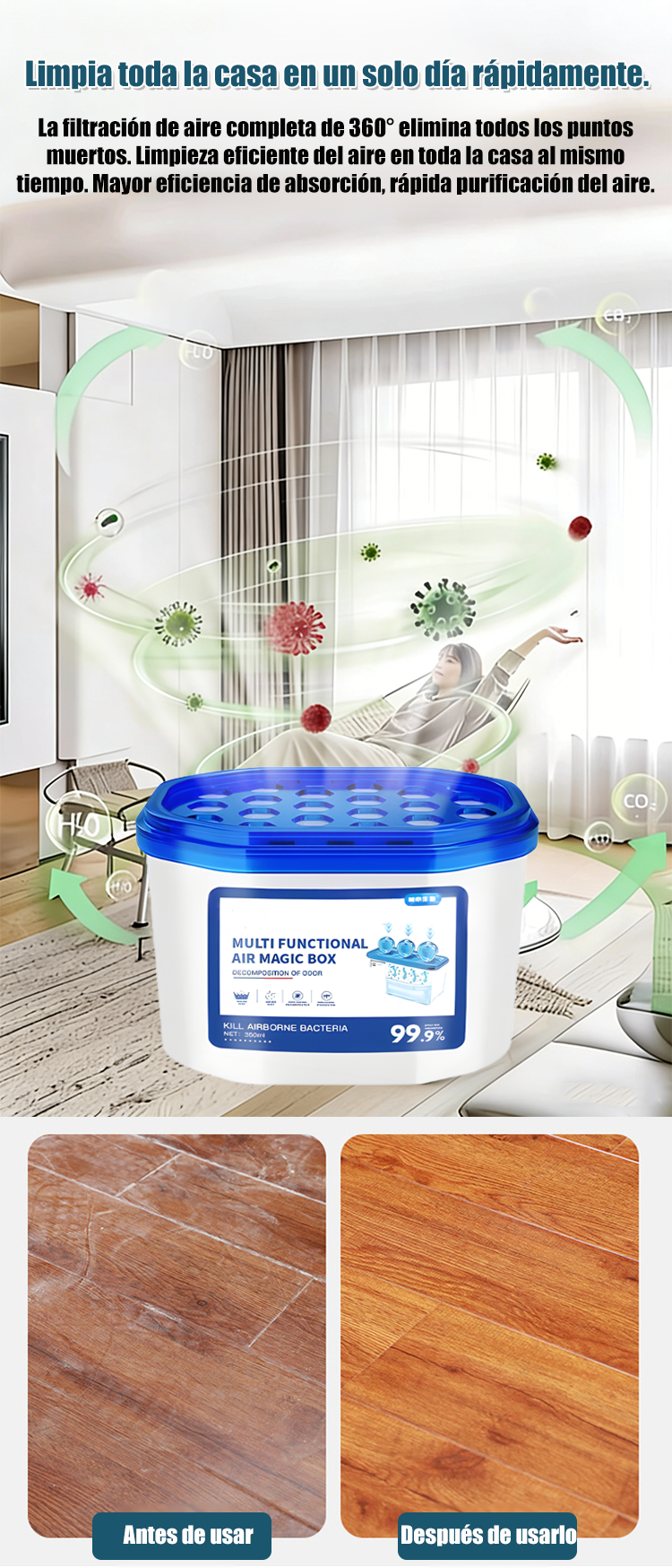 Caja mágica para purificación de aire interior y eliminación de polvo.No requiere electricidad-ES