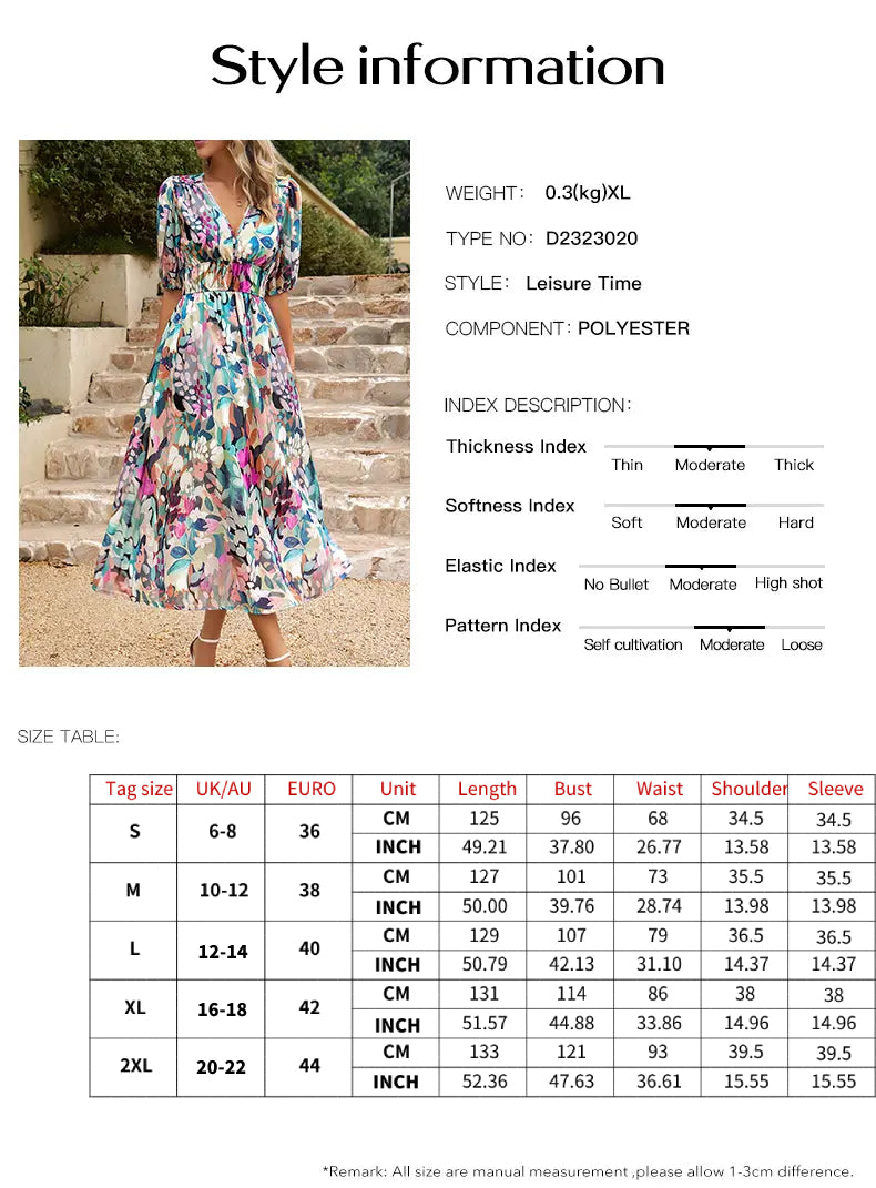 Κομψό τυπωμένο φόρεμα με V-λαιμό στη μέση-TAB