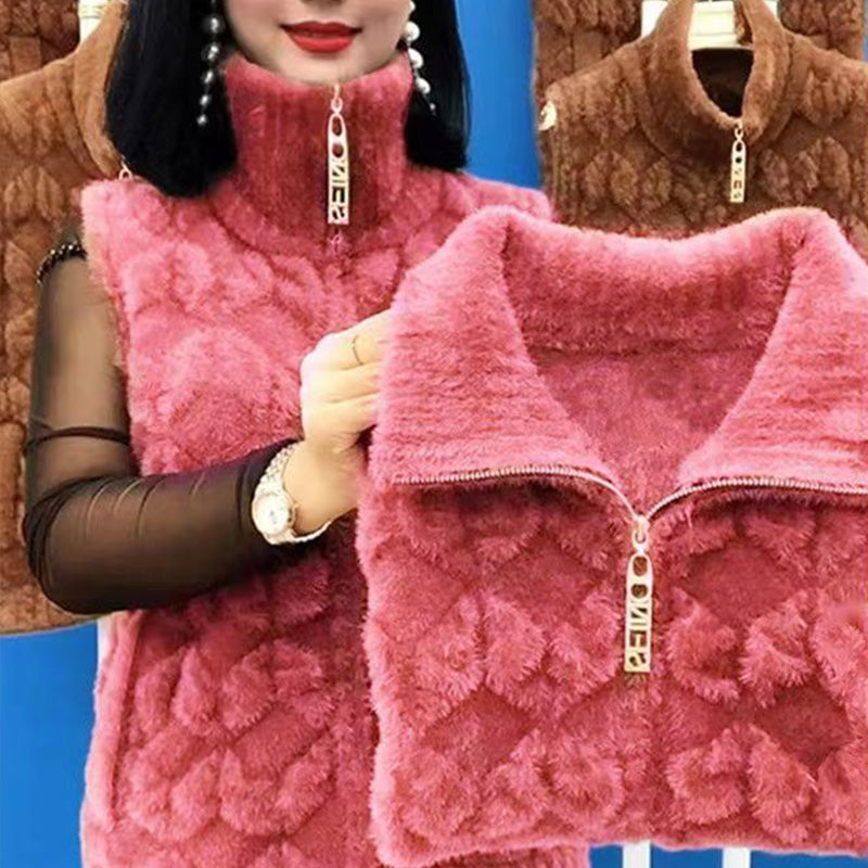 1 * Moteriška žieminė dirbtinio kailio liemenė šiltai madinga be rankovių