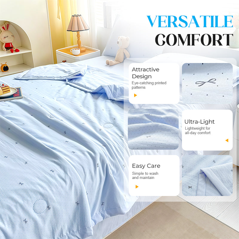 MATERIAL SUAVE Y CÓMODO: Hecho de algodón agradable para la piel, este edredón tiene una textura acogedora que brinda una comodidad suave, perfecta para un sueño reparador e ininterrumpido durante las estaciones cálidas.