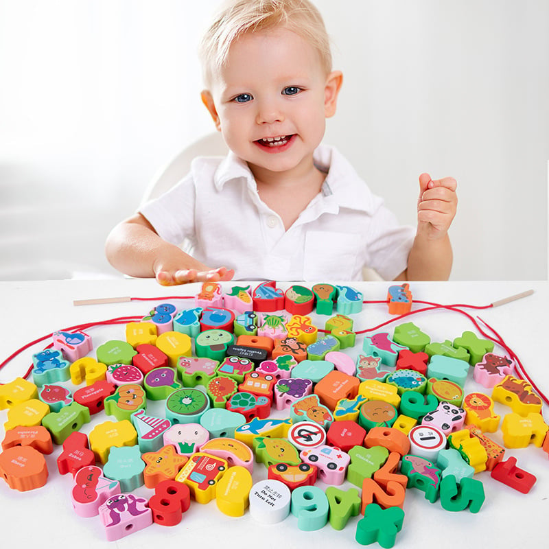 Naše veľké navliekacie korálky poskytujú stimulujúcu zábavu pri učení. V sekciách Zvieratá, Ovocie, Doprava, Listy a Počítanie je veľa farebných veľkých imelo.
