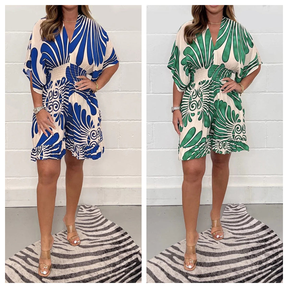 Į paketą įeina: 1 * Moteriškas trumpas kombinezonas su augalų raštais