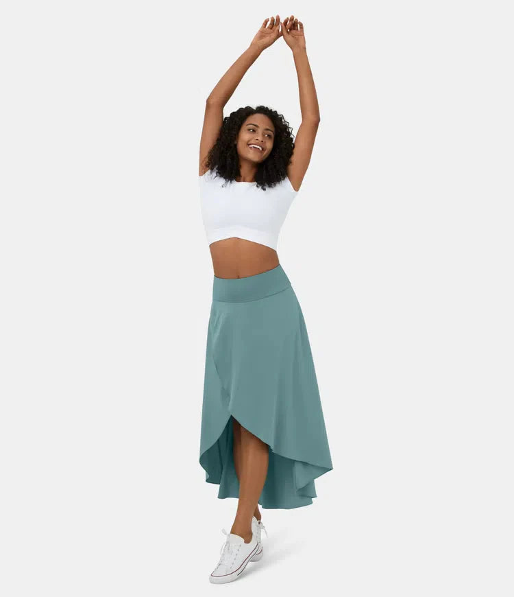 Falda 2 en 1 Midi casual de secado rápido con cintura alta y volante bajo-ES