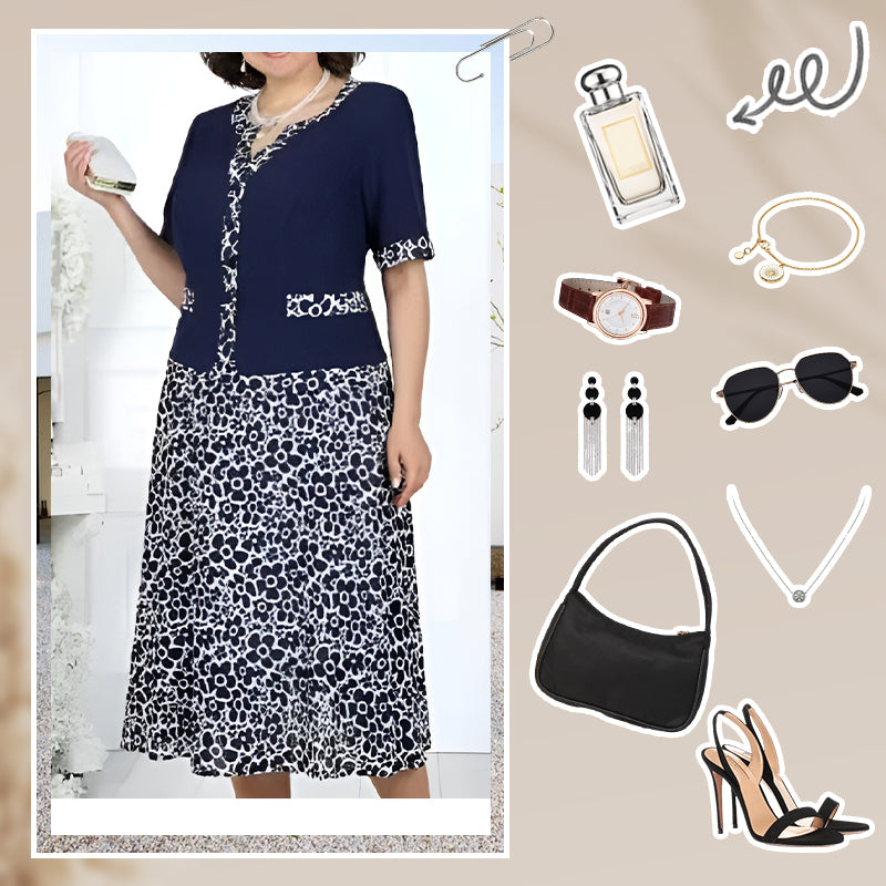El conjunto incluye: 1 × Elegante vestido de dos piezas de imitación para mujer con estampado floral.