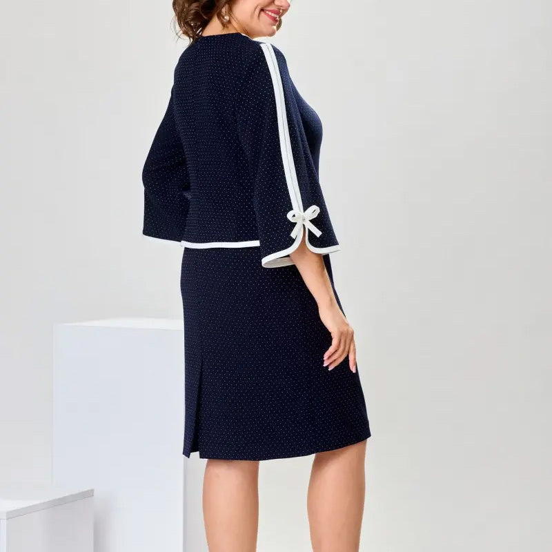 LAZO ELEGANTE EN LA MANGA: Este conjunto presenta un hermoso lazo en las mangas que agrega un toque elegante y femenino. Las mangas únicas crean un aspecto elegante y moderno, perfecto tanto para ocasiones cotidianas como formales.