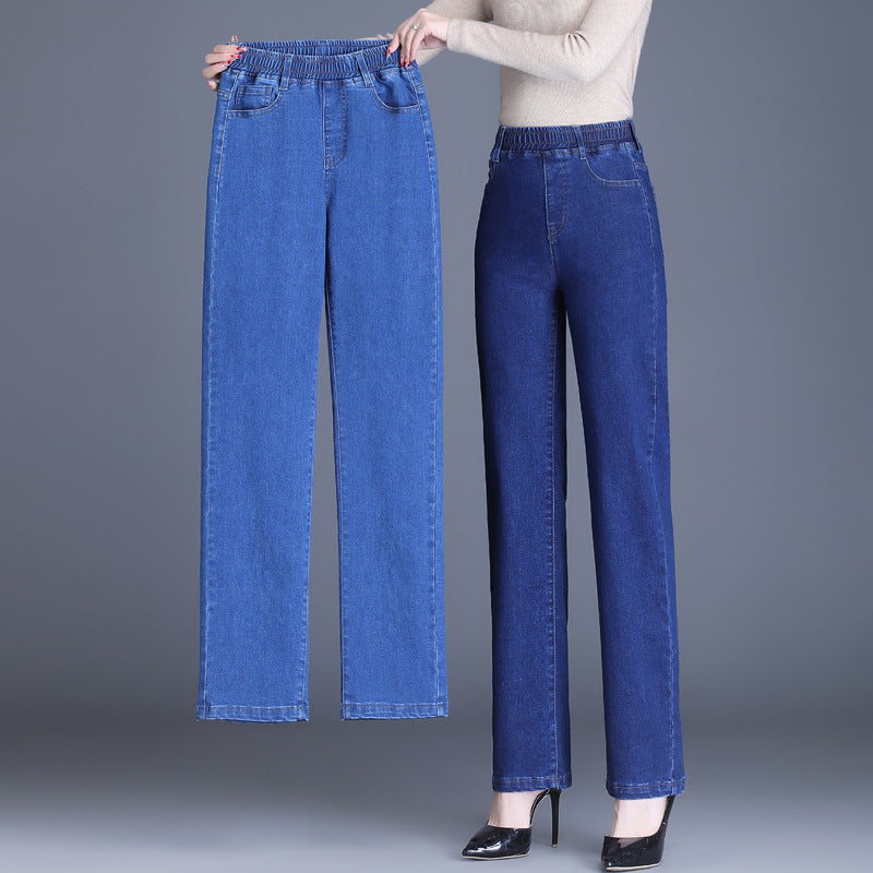 Pristatome mūsų moteriškus elastingus juosmens džinsus – tobulą komforto ir stiliaus derinį jūsų kasdieniam garderobui.