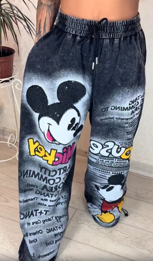 Dizainas: Spalvotas raštas su animacine grafika + skalbimo procesas, iš karto įžiebia gatvės tendenciją, plačios klešnės versija paslepia liemenį ir parodo ilgas klešnes, aukštas juosmuo su raišteliu prisitaiko prie skirtingų juosmens dydžių.