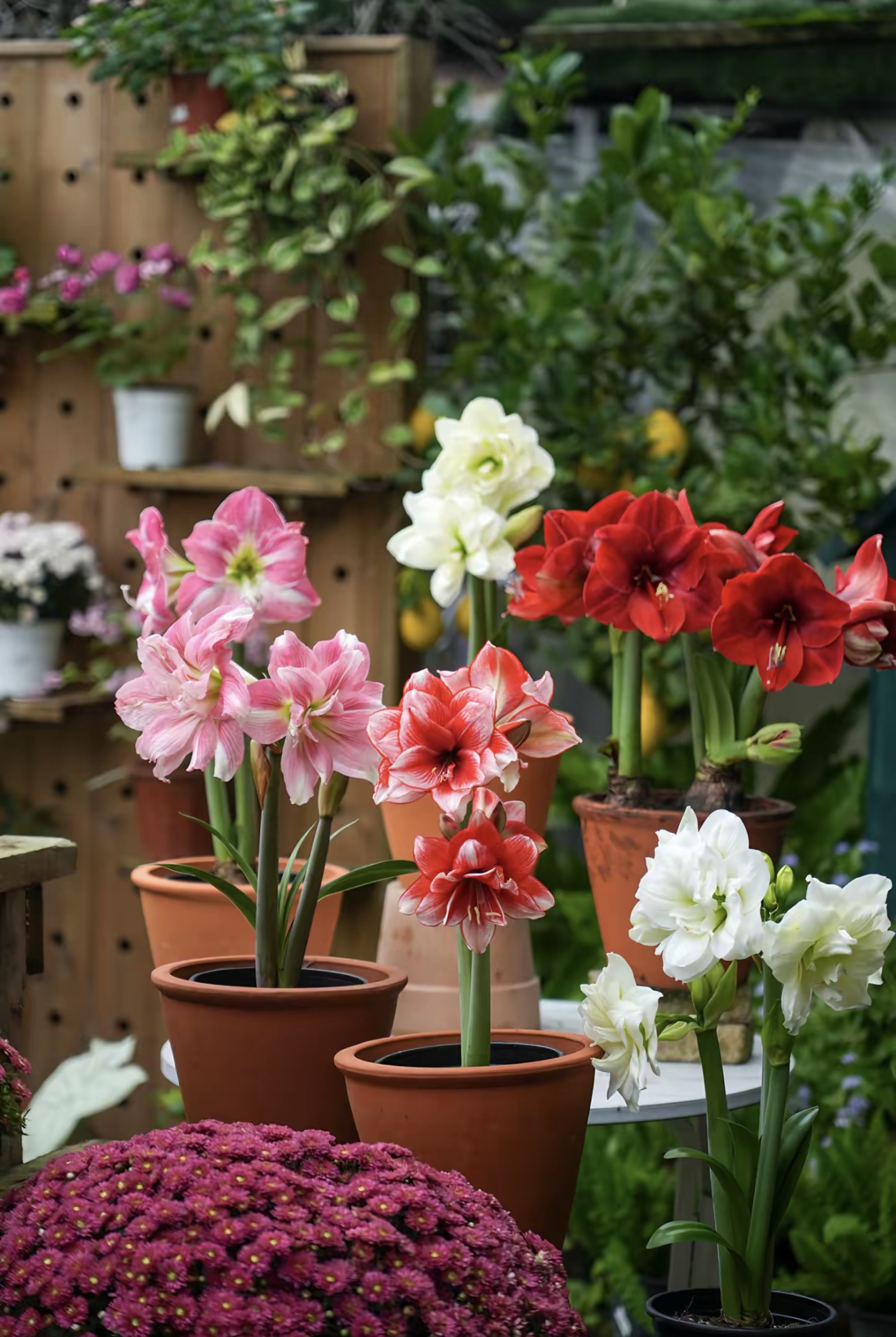 - Decoración de escritorio : Plante la Amaryllis de flores dobles en una maceta pequeña y colóquela en el alféizar de una ventana o en la mesa del comedor para darle un toque de elegancia.