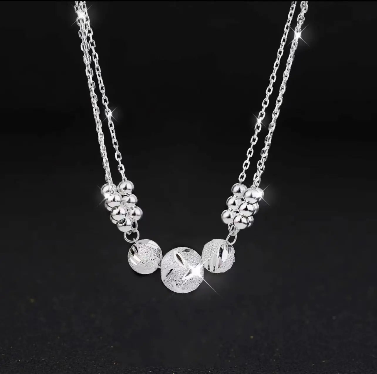 Popolnoma drugačen od običajnih modelov je zapleteno oblikovan z majhnimi kroglicami, okrašenimi s srebrnimi delci sredi treh sekajočih srebrnih črt, zaradi česar je videti eleganten in šik, ko ga nosite.