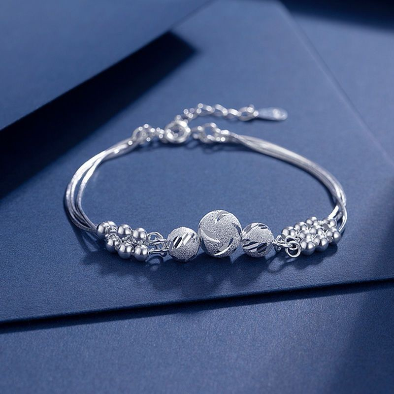 Tri srebrne verižice so prav tako zasnovane iz majhnih koščkov srebra, zato je zapestnica sama po sebi popolnoma dokončana in ni treba dodajati drugih okraskov.