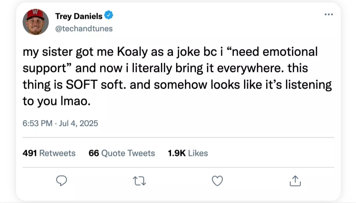 «Έχω εμμονή με αυτό το πράγμα! Ο Κοάλι φαίνεται αξιολάτρευτος και νιώθει ακόμα καλύτερα. Τη στιγμή που τον κράτησα, όλα ένιωσα πιο ήρεμα. Είναι σαν να έχω μια μικρή τσέπη γαλήνης στα χέρια μου.»