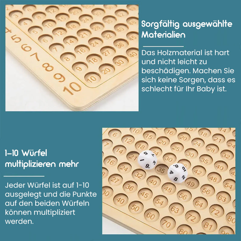 Različne matematične dejavnosti: Z igrami, kot sta ritmično štetje in množenje, lahko izvajate različne matematične vaje. Širok spekter uporabe: Lesene tabele množenja so idealen učni material za vrtce, osnovne šole, jasli itd. Zaradi svoje prenosne velikosti so priročne za uporabo na prostem, v učilnici in doma.