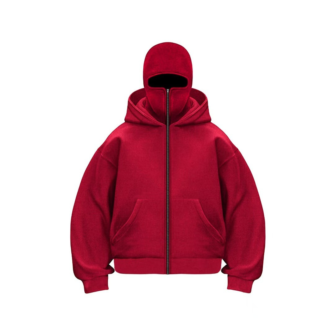 Αυτό το unisex φούτερ με κουκούλα συνδυάζει μοντέρνο σχεδιασμό με μάσκα ενσωματωμένη στην κουκούλα, παρέχοντας πλήρη προστασία και αίσθηση ανωνυμίας. Διατίθεται σε ποικιλία χρωμάτων και μεγεθών, προσφέροντας ένα μοναδικό και πρακτικό στυλ.