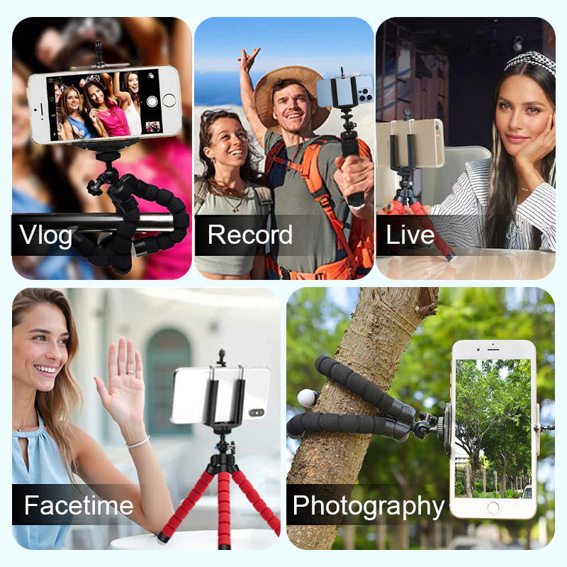 Specialios lanksčios aštuonkojo kojos vadinamos kojos gali būti susuktos į bet kokią formą ir saugiai pastatytos ant nelygaus paviršiaus, nelygių paplūdimių. Apvyniokite rankenos kojeles aplink lempą, aką, medį ar bet kurį kitą objektą su stabiliu kokonu Puikus pasirinkimas nuostabioms akimirkoms įamžinti.