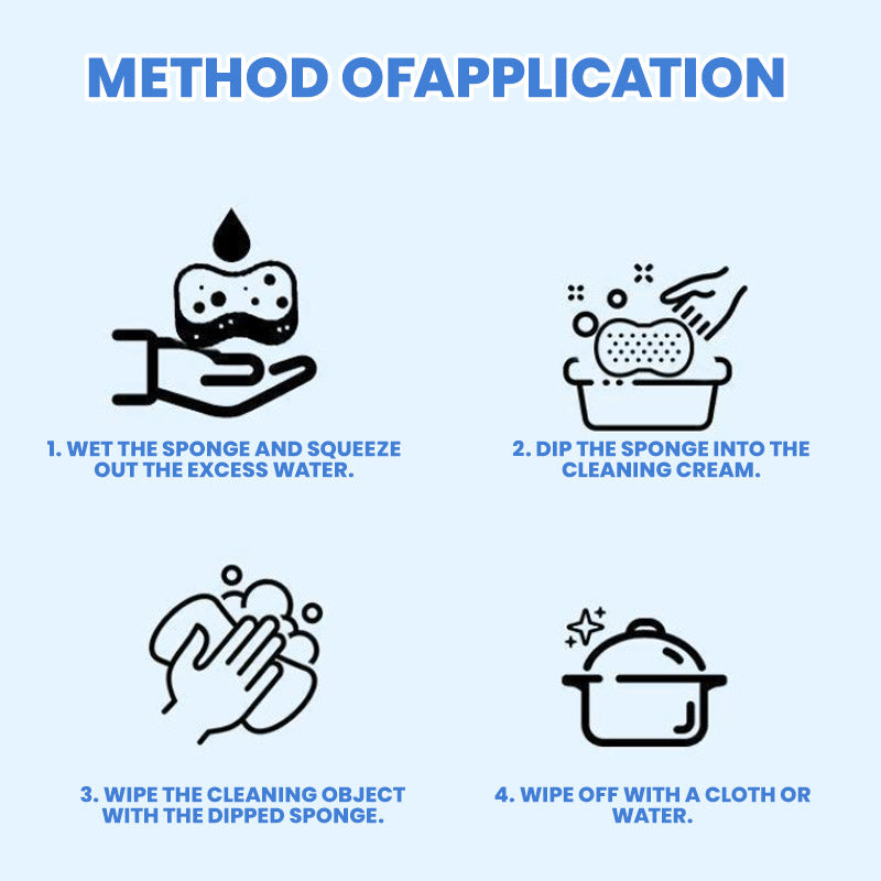Į pakuotę įeina: 1 * Daugiafunkcis efektyvus valomasis kremas su kempine