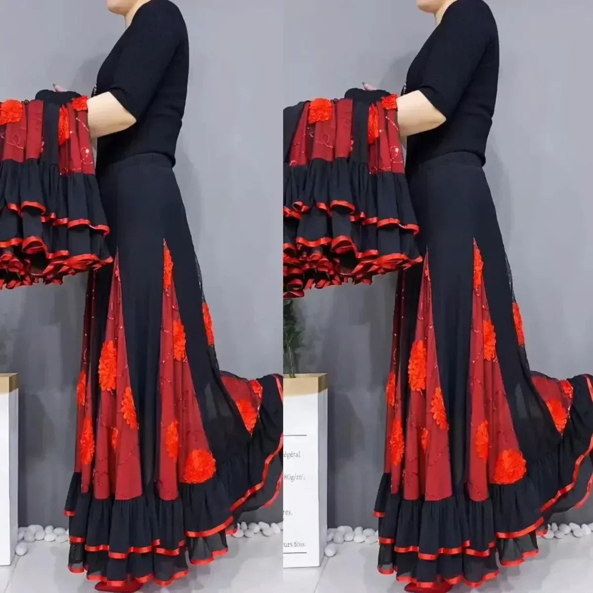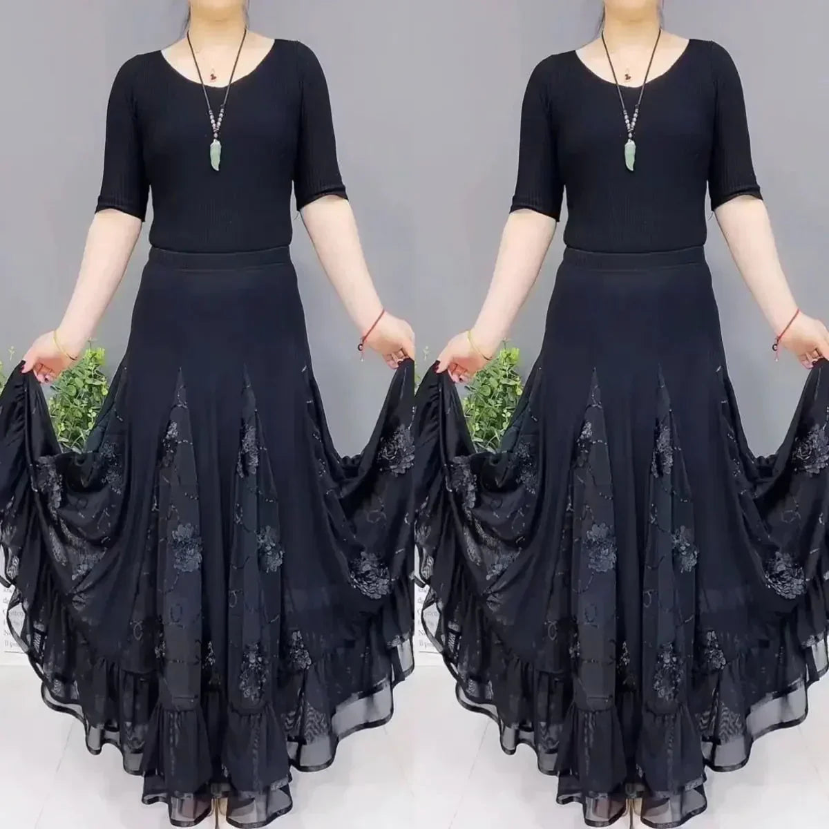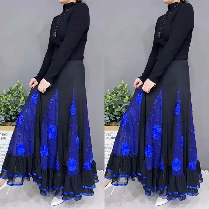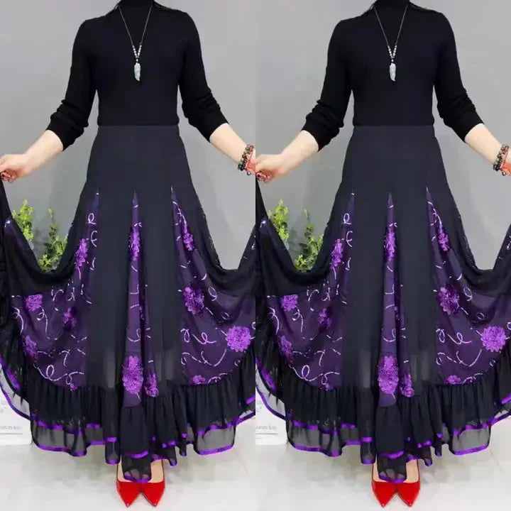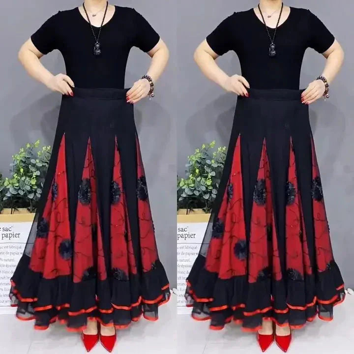 🌷🌹Νέα ψηλόμεση κεντημένη μακριά χορευτική φούστα-GR