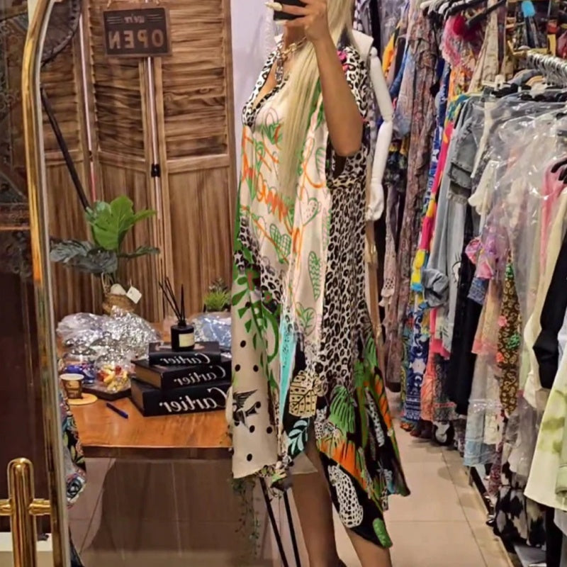 Pakett sisaldab: 1 * naiste sügava V kaelusega lühikeste varrukatega trükitud kleit