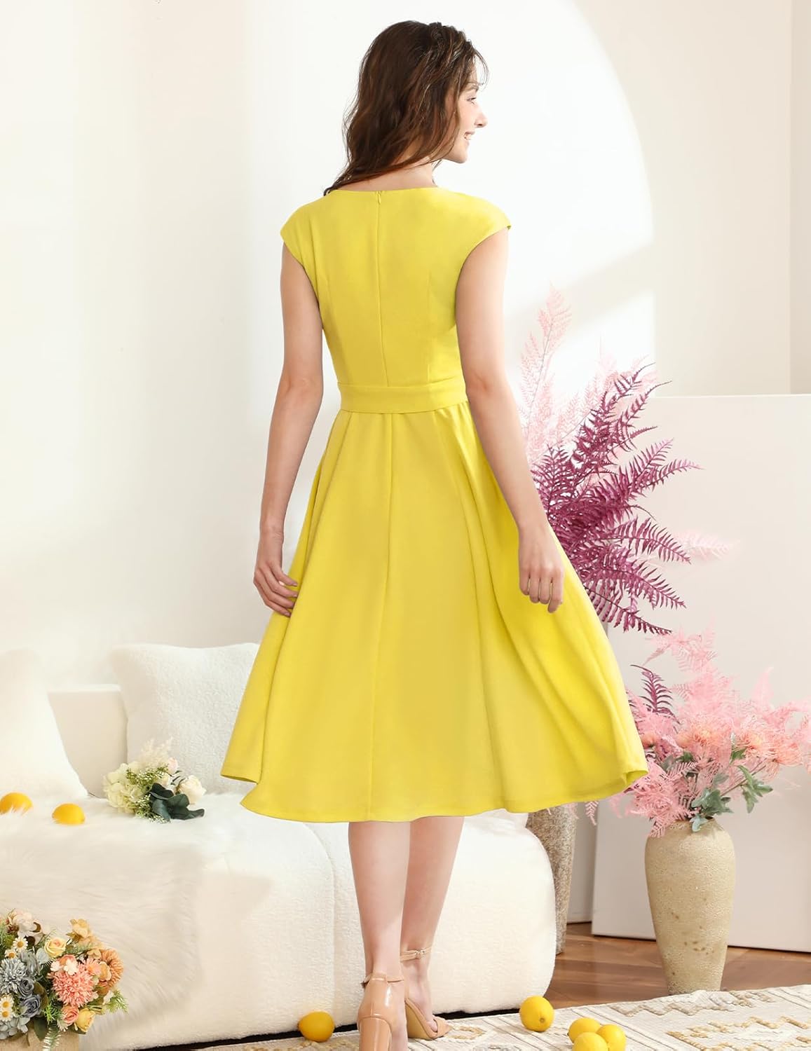 Moteriškos oficialios suknelės: Kokteilinės suknelės puikiai tinka kasdieniam darbui, jos padeda suderinti savaitgalio pramogas su darbo aprangos poreikiais. Vidutinio ilgio, ryškiai geltonos spalvos siluetas ir nuimamas dekoratyvinis diržas – visi šie stiliai atitiks jūsų pusiau oficialius poreikius. Moteriškos