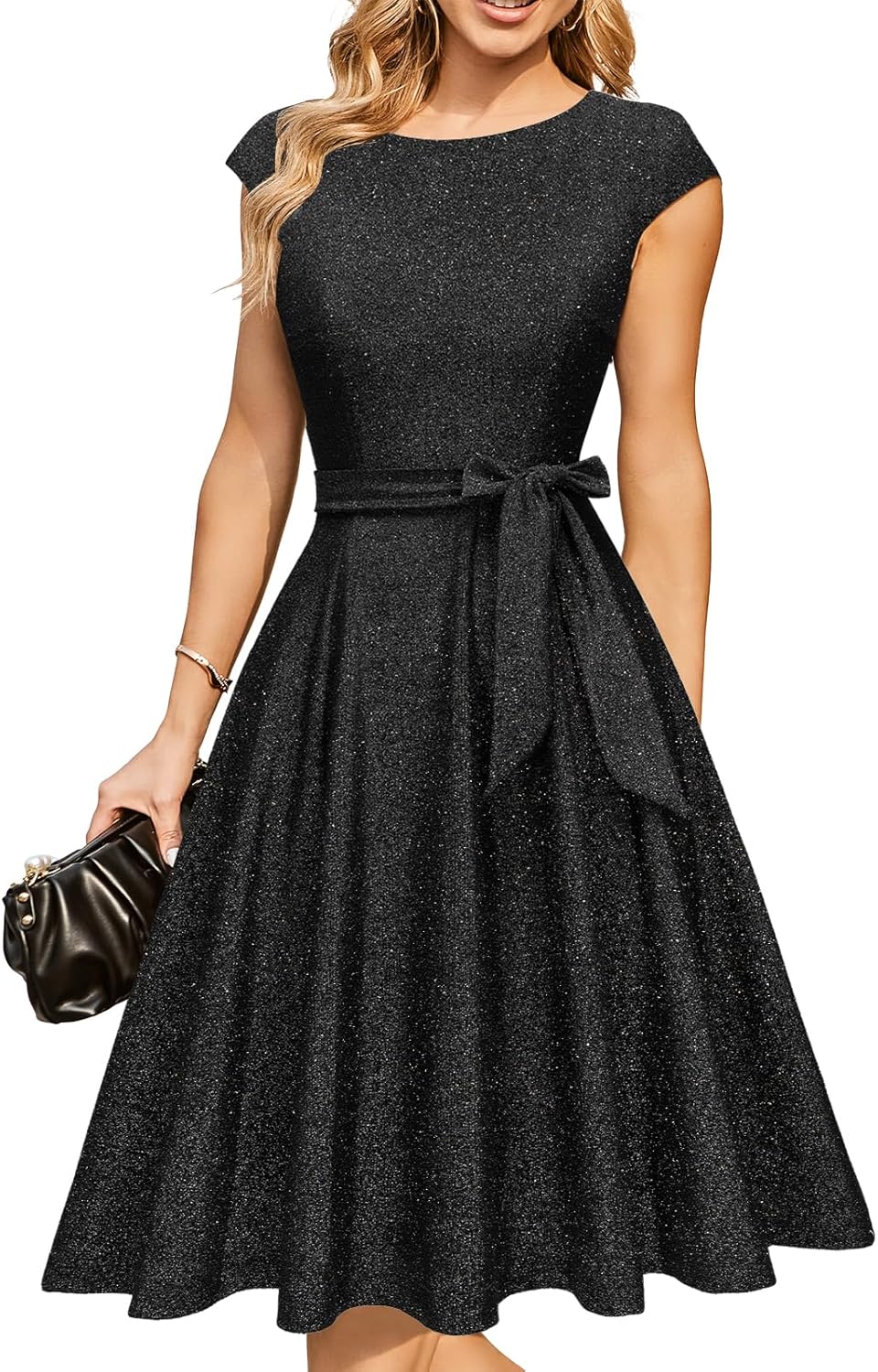 2025 m. pavasario/vasaros suknelės: Ši laisvalaikio vestuvių svečio suknelė puikiai tinka tiek elegantiškoms progoms, tiek kasdienai! Kepurės su kepuraitėmis paryškina jūsų pečius! Ši tampri ir laisvai krintanti vakarietiško stiliaus suknelė yra patogi ir aptempta ties juosmeniu, bet ne per ankšta.