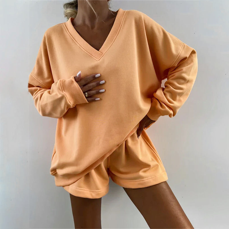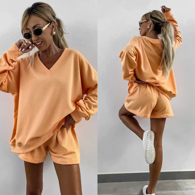 STILIŲ KOORDINAVIMAS – šis derantis rinkinys užtikrina lengvą stilių su derintu viršeliu ir šortais, puikiai tinkantis kasdienėms išvykoms, atostogoms ar poilsiui namuose.