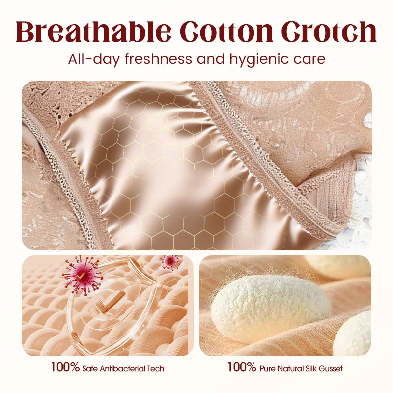 ELEGANTINIAI NĖRINIAI – Sudėtingi gėlių nėrinių įsiuvai šonuose suteikia šioms kelnaitėms rafinuotą, moterišką išvaizdą, suteikdami romantikos ir pasitikėjimo savimi jūsų kasdieniams garderobo elementams neprarandant patogumo ar stiliaus.