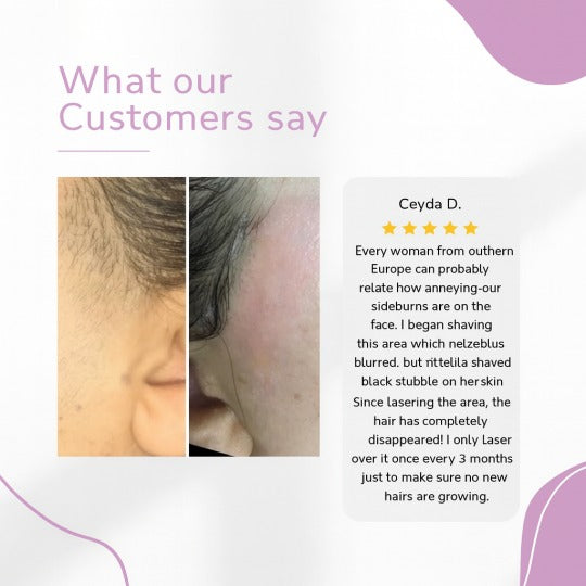 ✘ Ni priporočljivo za zelo temne tone kože (Fitzpatrick VI) ali rdeče/sive/bele lase, saj svetlobna energija morda ne bo učinkovito ciljala na lasne mešičke.