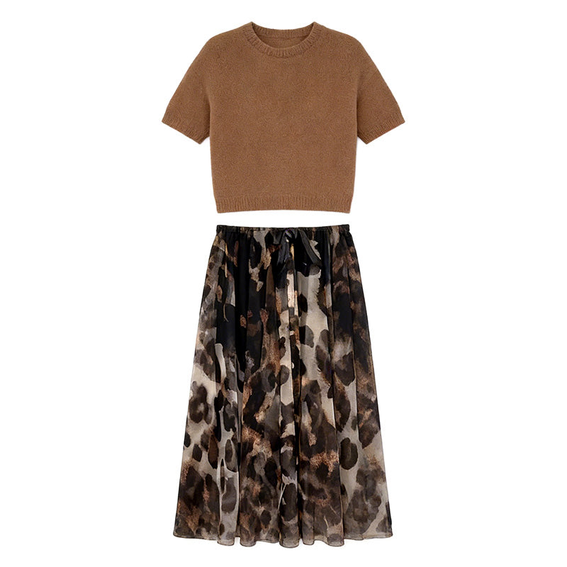 Σετ δύο τεμαχίων για γυναίκες: πουλόβερ και φούστα με λεοπάρ σχέδιο-GR